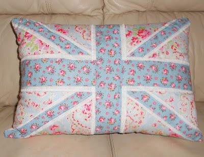 I decided to play with some fabric last night, I had another cushion in mind and something I have wanted to try for a while. I couldn't find a good pattern or tutorial online, so I made one up! Not difficult really as it a well know subject! My precious Cath Kidston fabric was put to good use and another cushion finished and ready to join the others.